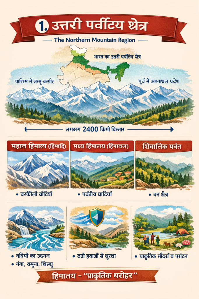 1️⃣ उत्तरी पर्वतीय क्षेत्र (Northern Mountain Region)
