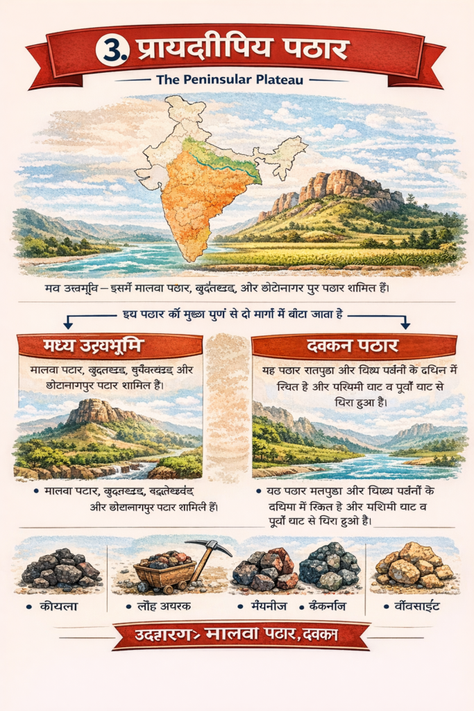 3️⃣ प्रायद्वीपीय पठार (Peninsular Plateau)