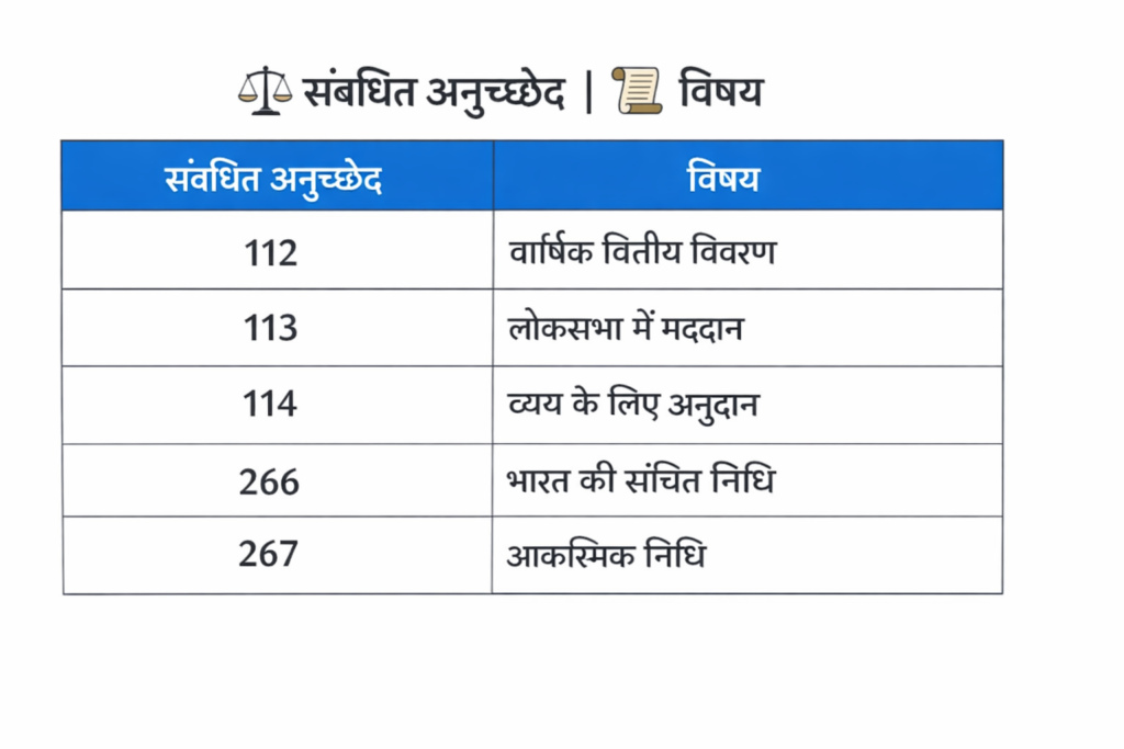 ➡️ भारतीय संविधान में बजट को “वार्षिक वित्तीय विवरण (Annual Financial Statement)” कहा गया है।
